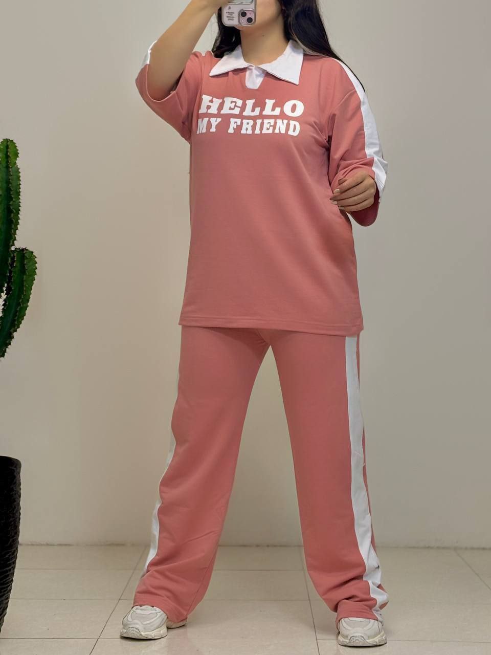 ست تیشرت شلوار اسپان نرم راحت مدل Hello با رنگ بندی💠💠کد43493