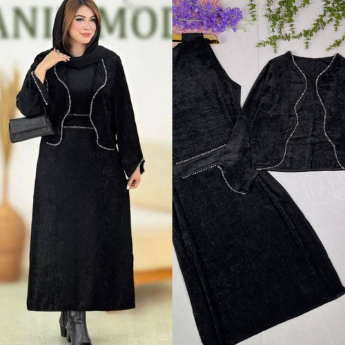ست کت و سارافون مخملی مشکی کد 6189🖤🛍️
