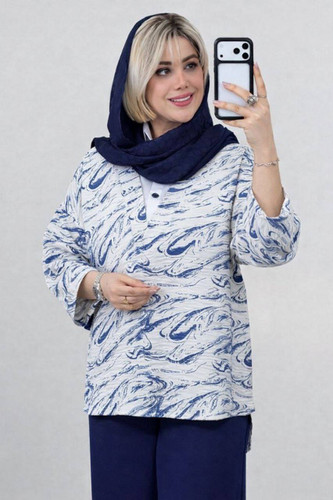 شومیز مانتویی جیب صلیبی طرحدار کد 3955⭐🧸