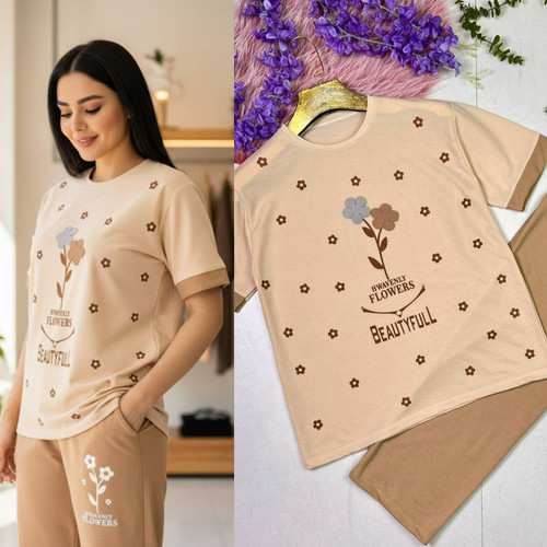 ست تیشرت و شلوار آستین سه ربع کد 3961🌸🌼