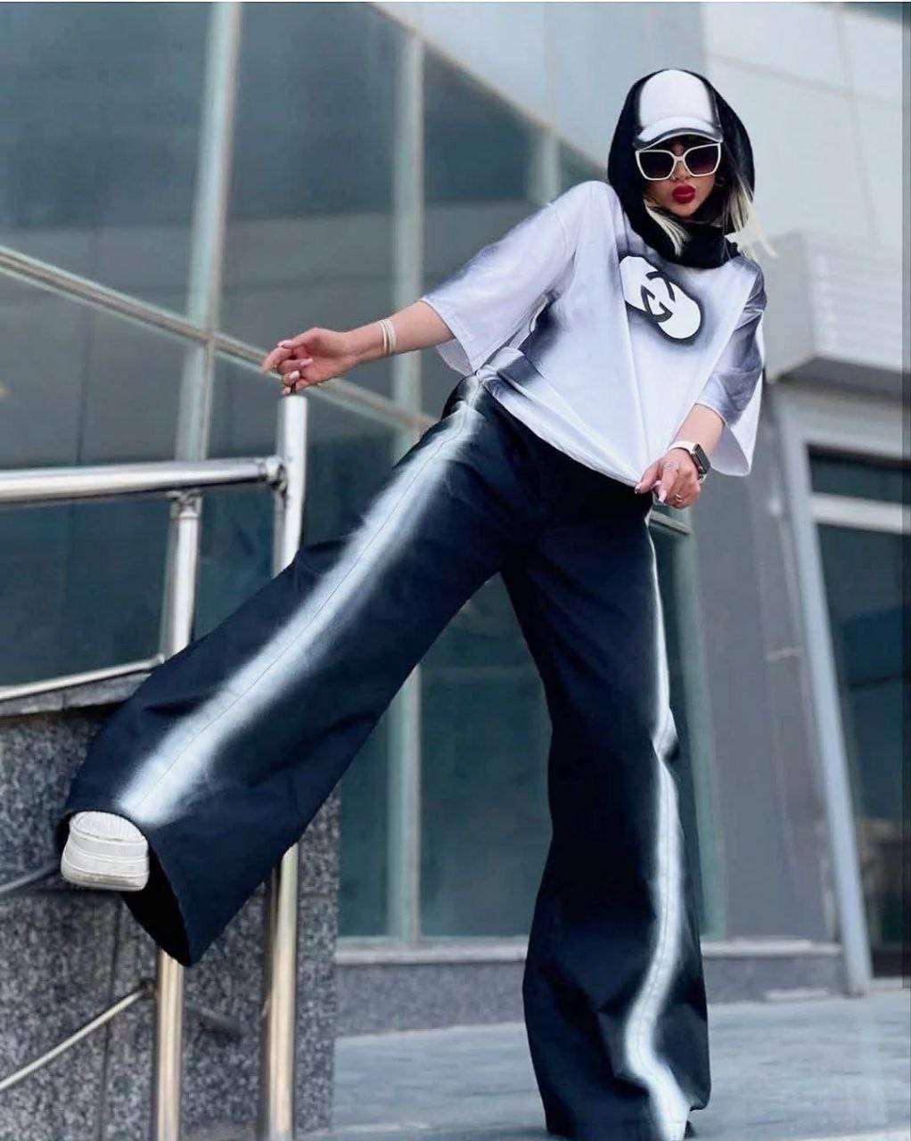 ست تیشرت و شلوار قواره بزرگ دورس چهار فصل کد 6679🤎🌙