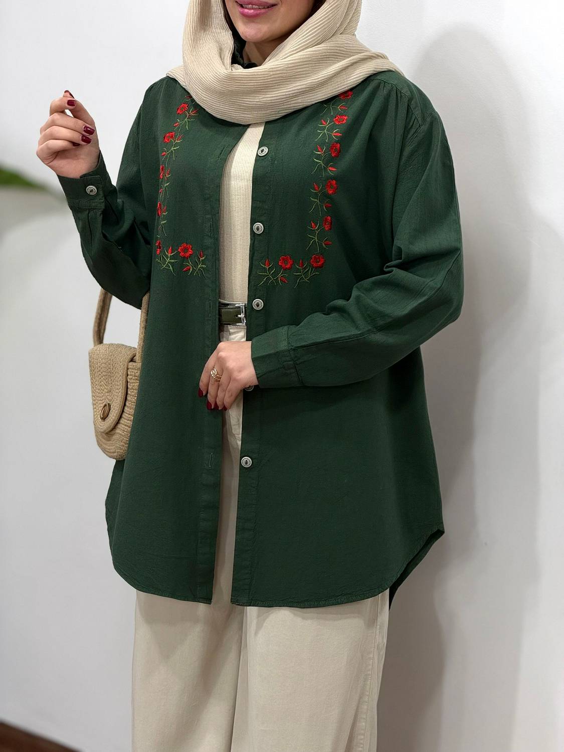 شومیز مانتویی جمره کتان کد 6275🧡🛍️