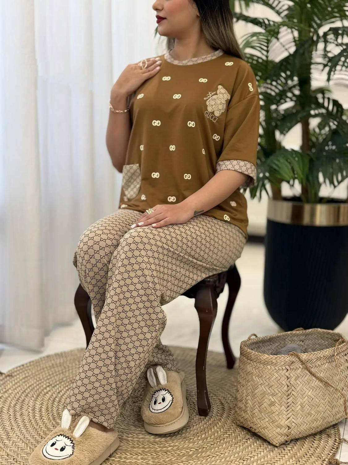 ست بلوز و شلوار جذاب گوچی خرسی کد 6648🧸🤎