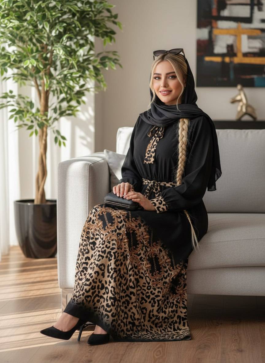 پیراهن ماکسی پلنگی زنجیری زیبا کد 3962🌙✅