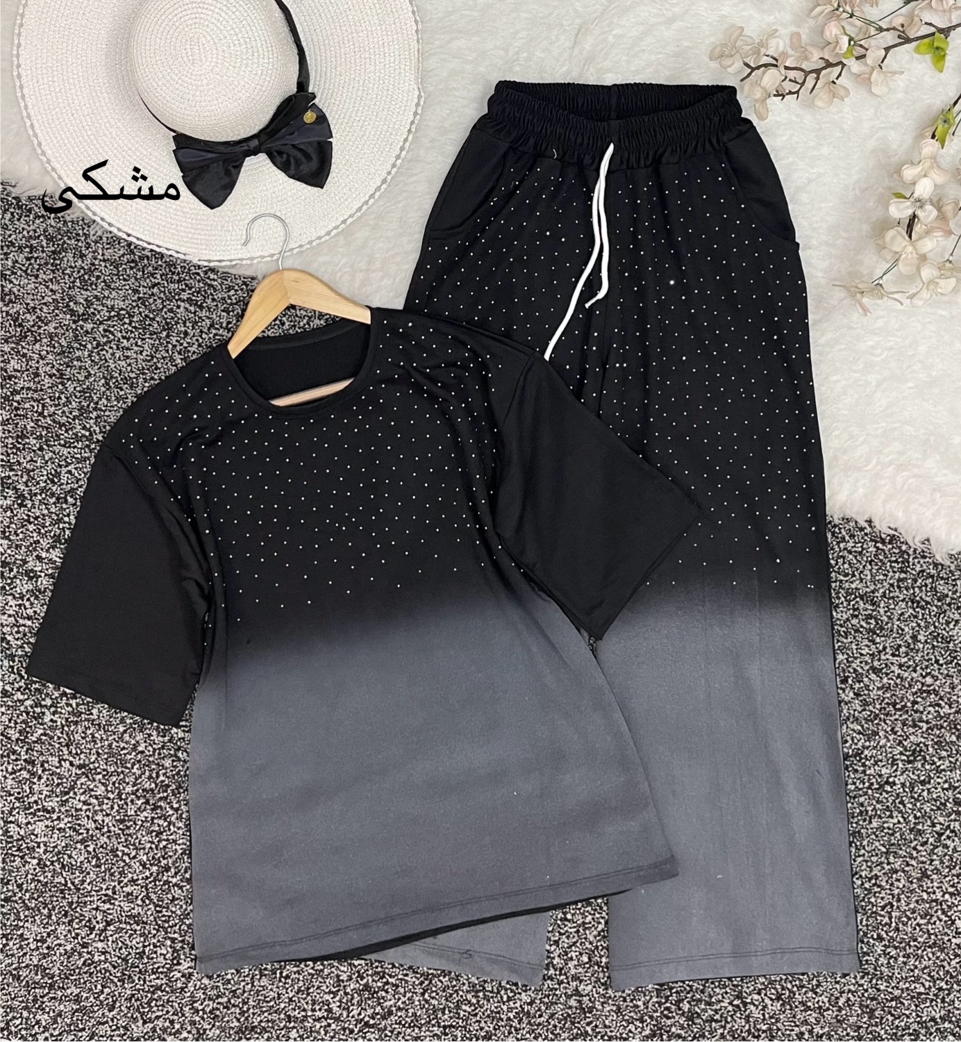 ست تیشرت و شلوار کهکشان نگین کد6926🌌🥹