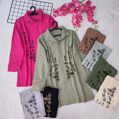 شومیز مصری ✅️✅️کتان گلدوزی 💯رنگ سرخابی 🌈شناسه۷۴۷۹