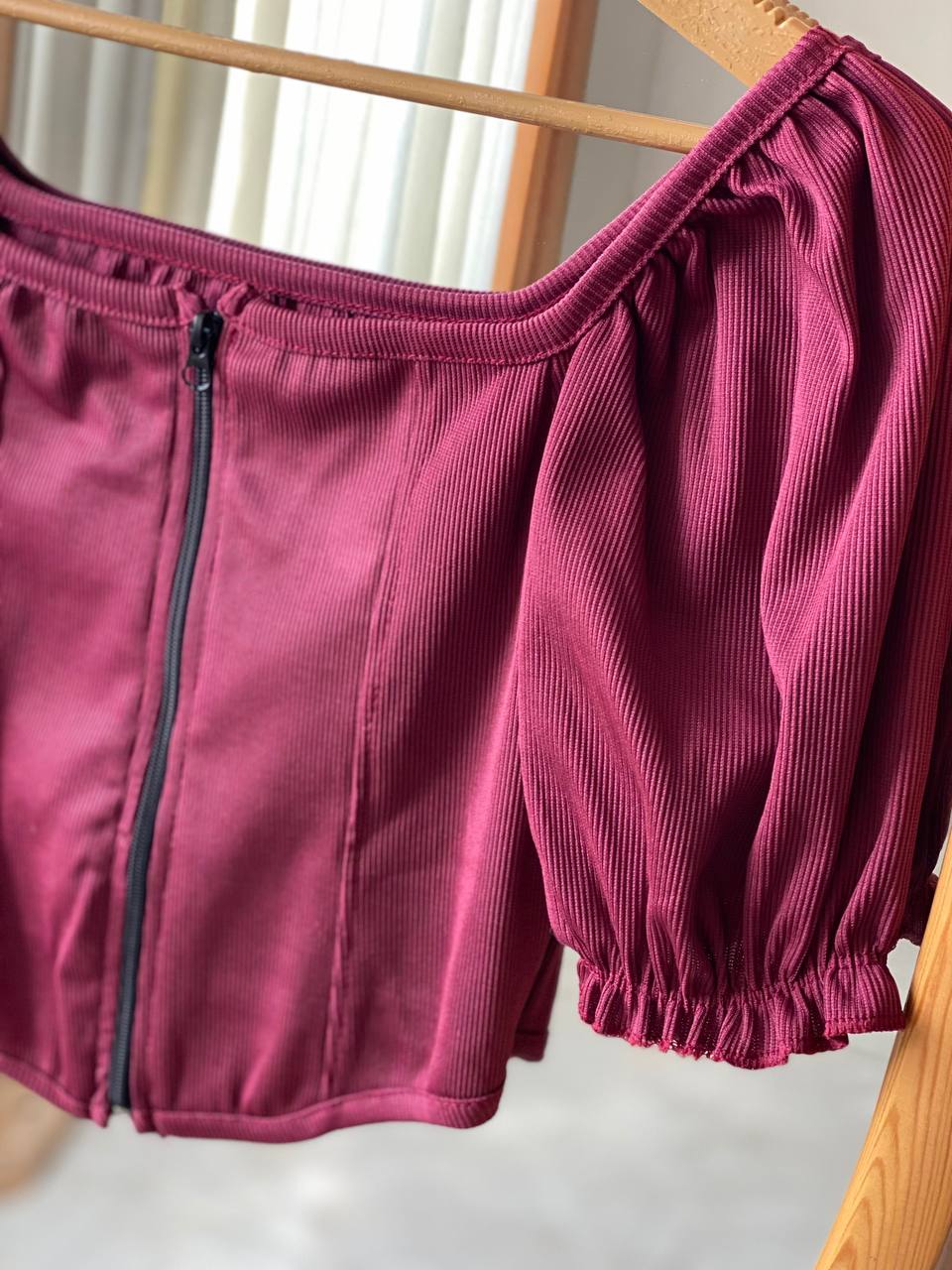 کراپ آستین پفی با جتس فانریپ 🌈🎀🛍۹۲۴۳