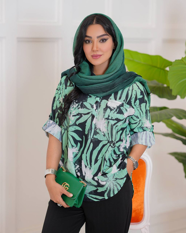 شومیز دنیز طرح چاپ ایتالیایی فوق العاده خوش طرح ورنگ 💛💜🩵