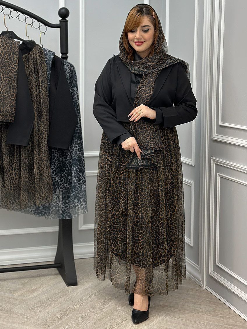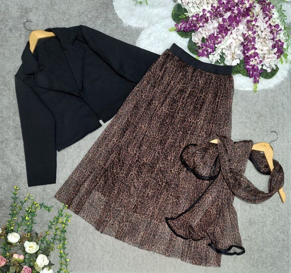 ست سه تیکه کت دامن و شال پلنگی مازراتی و تور ترند 🥰🧿🥰