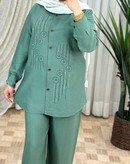 ست شومیز شلوار شانتون کمر کش دار با چند رنگ جذاب 🌈🌈🌈