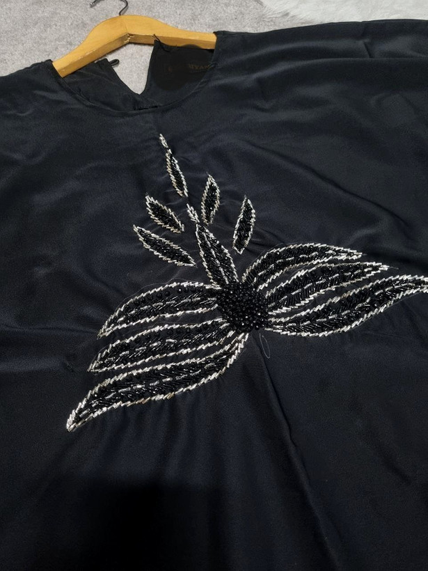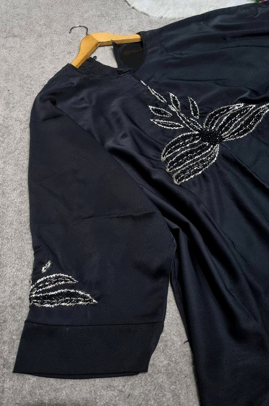 عبا بلند الیزه مشکی طرح مشکی جواهر دوزی شده 💎کد43211
