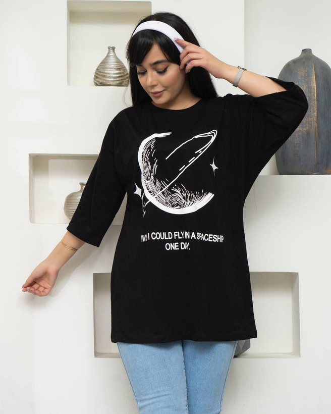 تیشرت تک لانگ نخ پنبه مشکی ماه 🌙🌙کد43426