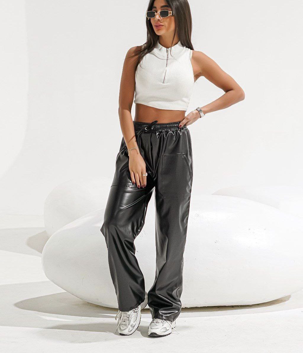 شلوار بگ چرم بسیار خوش پا و جذاب چرم اعلا💯🩷کد832