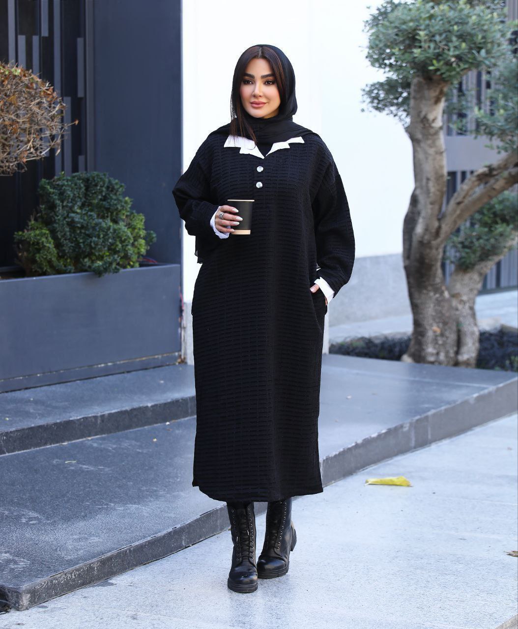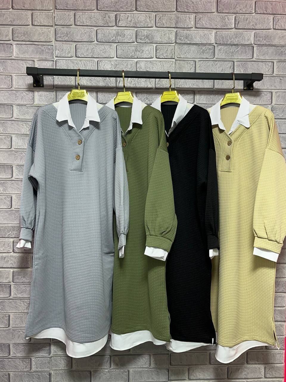 🍀یقه و پایین کار پارچه سفید تترون کار شده