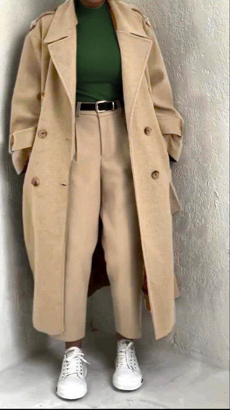 🌸کمربندها و یقه رودوزی شده که حالت مزونی و ایستایی عالی به پالتو میده