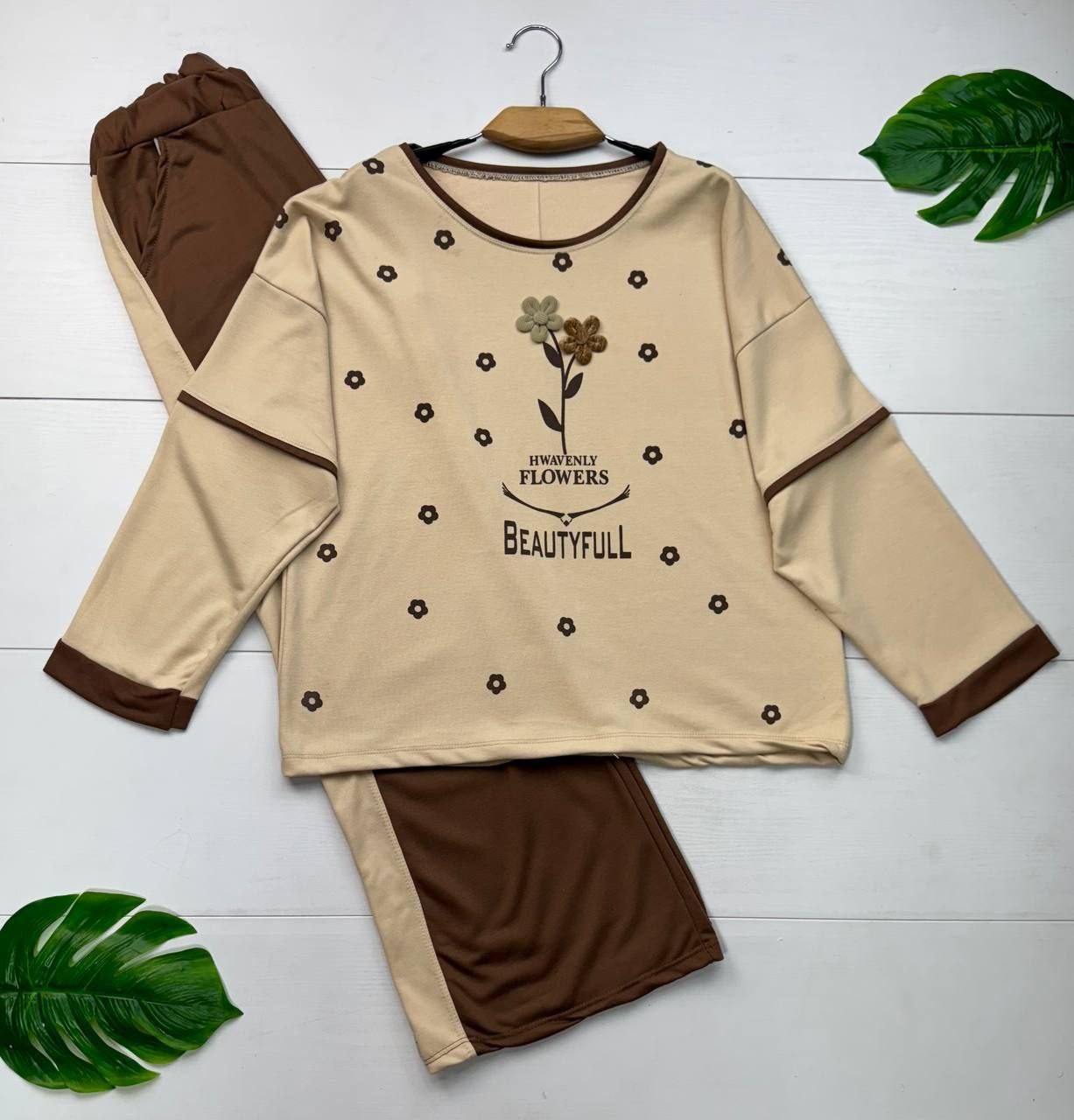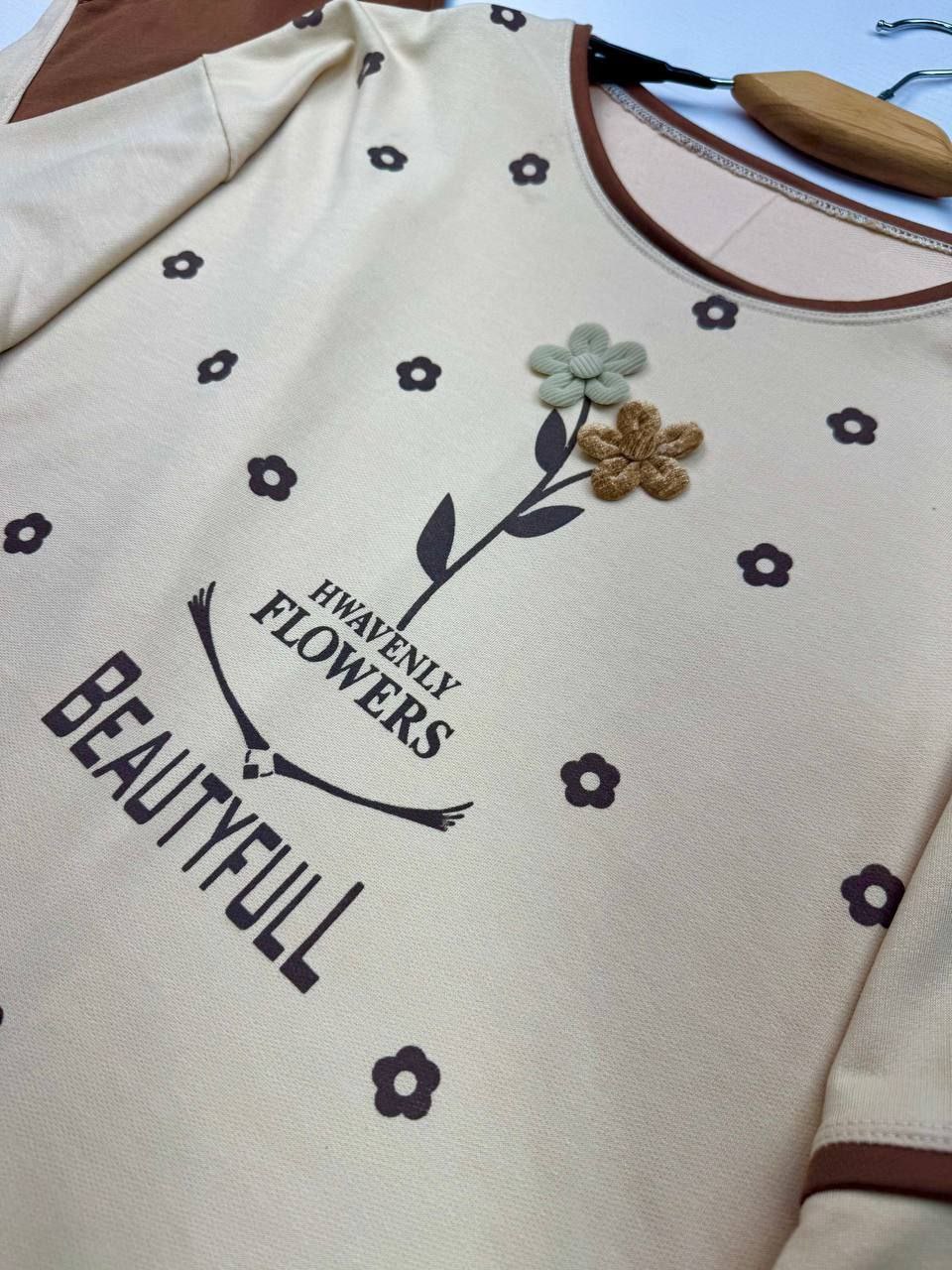 ست تیشرت شلوار پنبه لاکرا Flower 🌼🌼🌸کد 97744