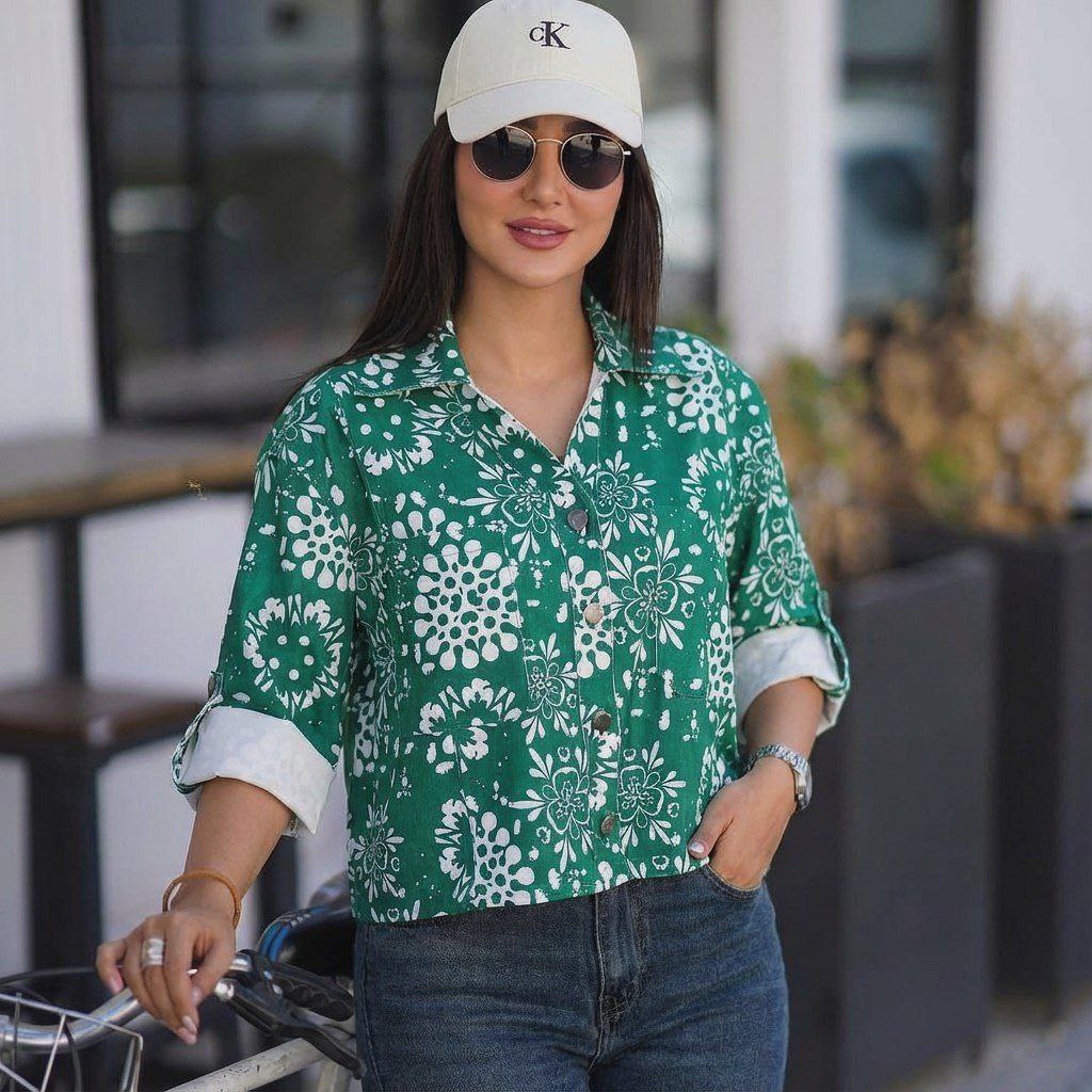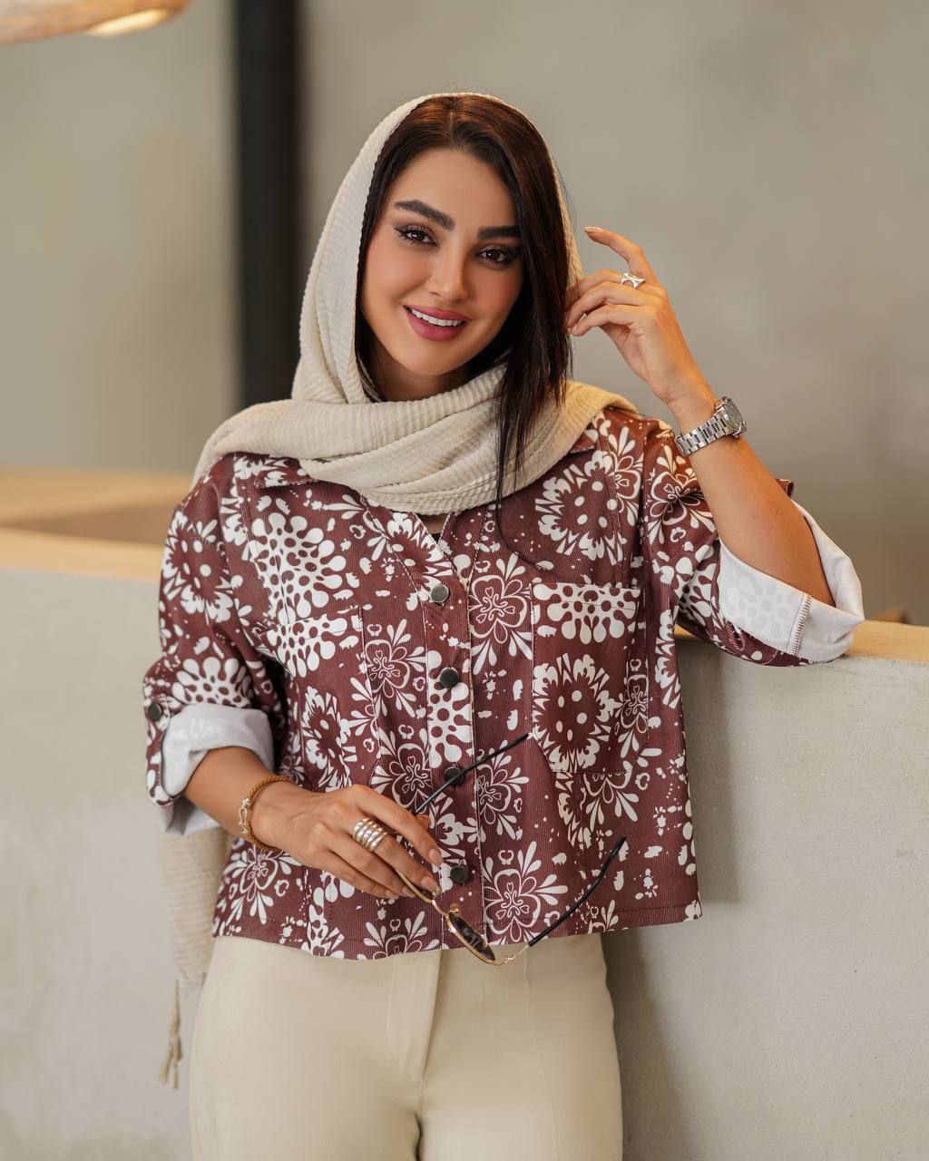 شومیز مخمل کبریتی چاپی ترلان 99768 🌱🌱