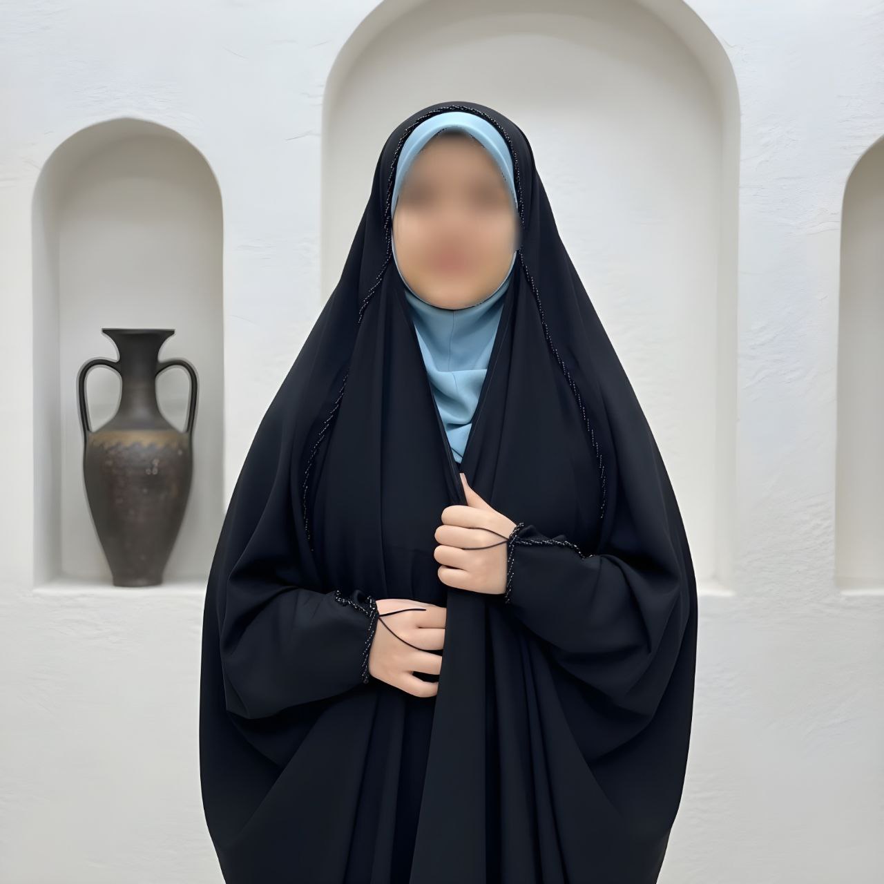 چادر جده منجوق دخترانه کرپ حریر الاسود جذاب کد 1641🖤✅