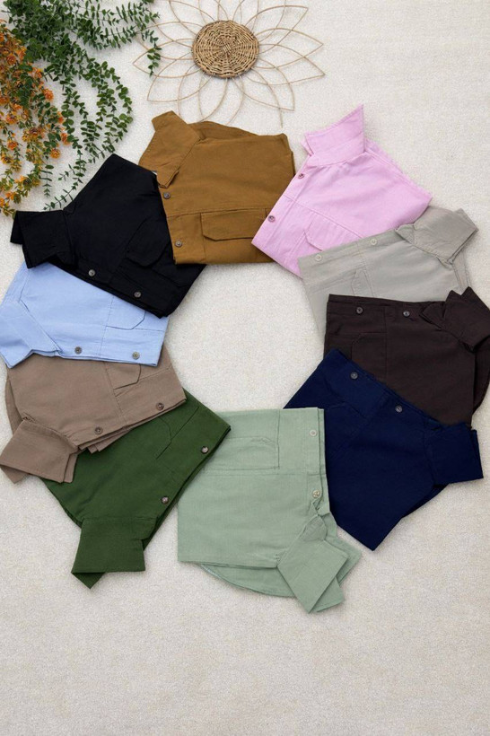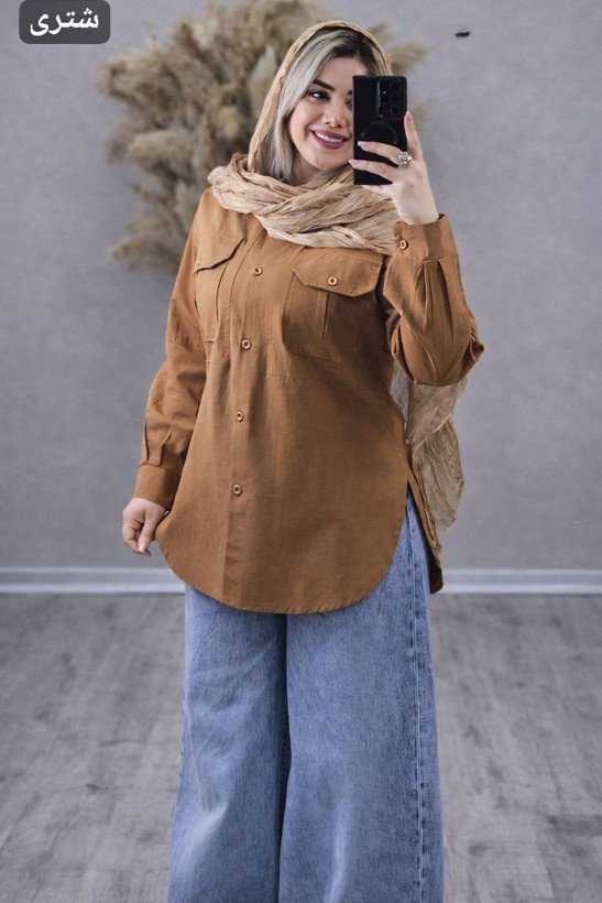 شومیز مانتویی جمره کتان کد 6275🧡🛍️
