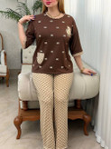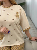 ست بلوز و شلوار جذاب گوچی خرسی کد 6648🧸🤎