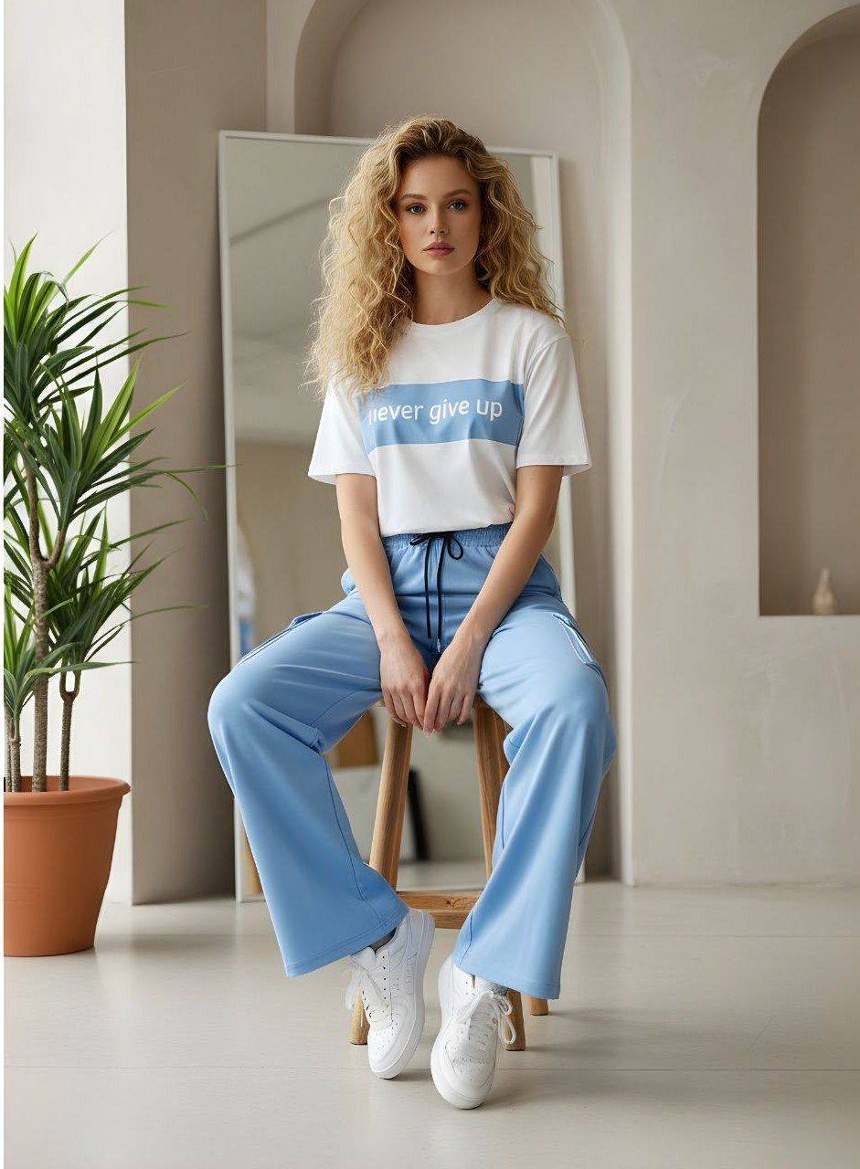 ست تیشرت و شلوار زیبا در دو رنگ کد 6796🩵💛