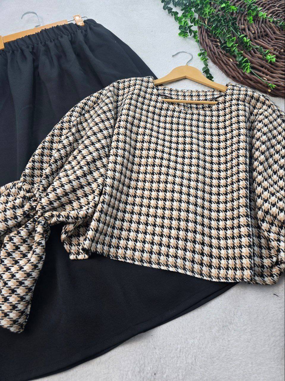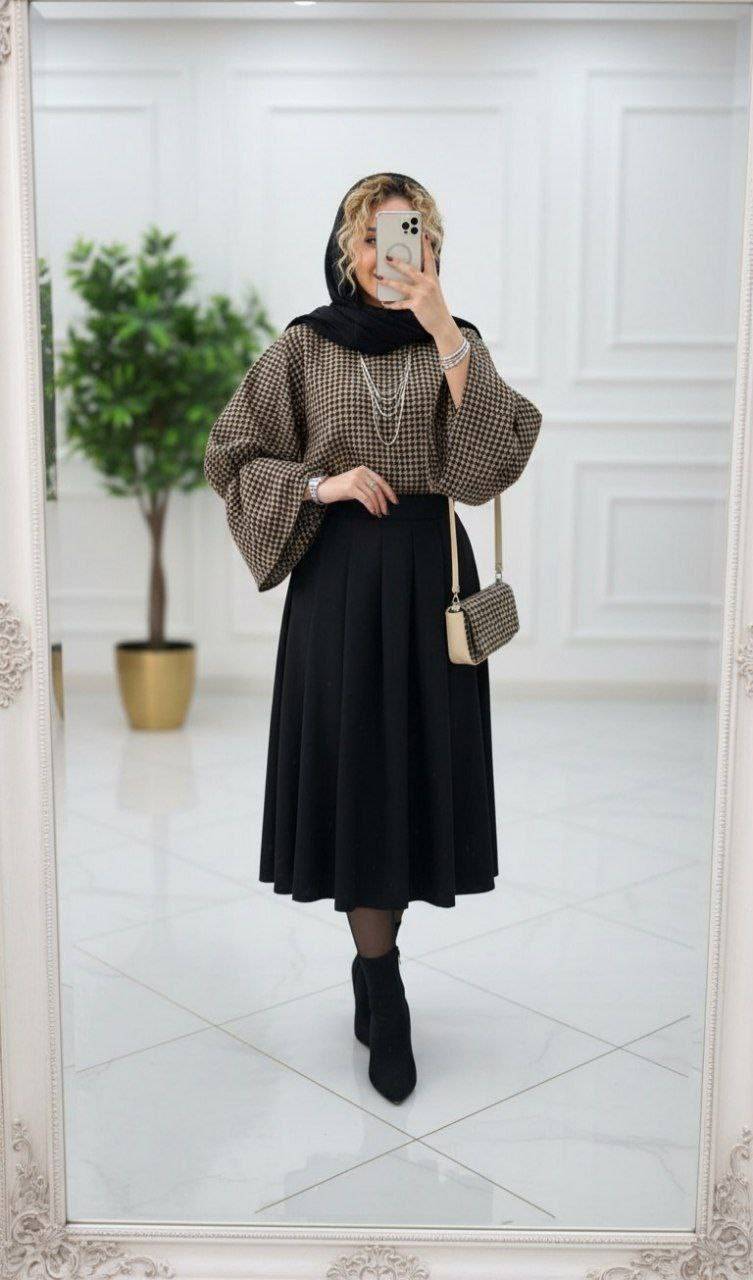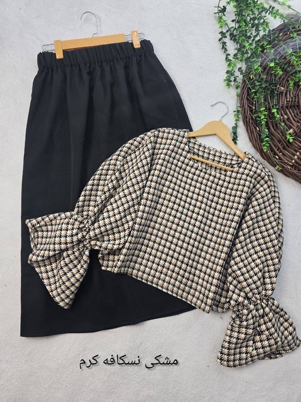 ست دامن از جنس مازراتی عالی با پانچ توییت موهر دوبل ،هم ستش قشنگه هم میتونی پانچ و دامنش رو با لباسای دیگت استایل کنی ،به این میگن یه خرید اقتصادی