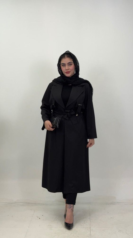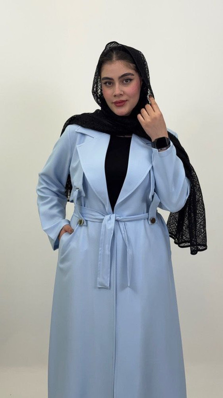 مانتو بلند شنل دار مازراتی کجراه درجه یک کد 101398💙🩵