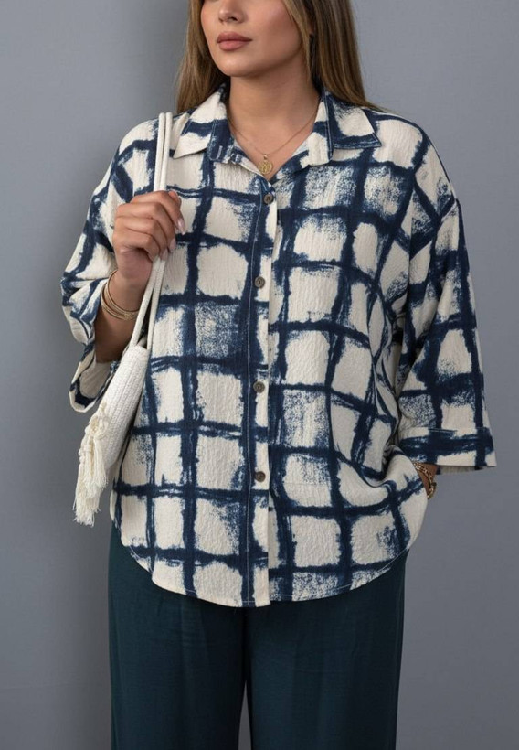 شومیز چارخونه رویا✅️✅️✅️کرپ کریشه پفکی 🌈🌈🌈شناسه ۶۹۶۴