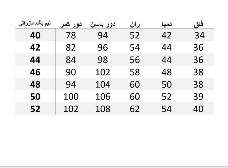 سایز ها : 40, 42, 44, 48, 50, 52