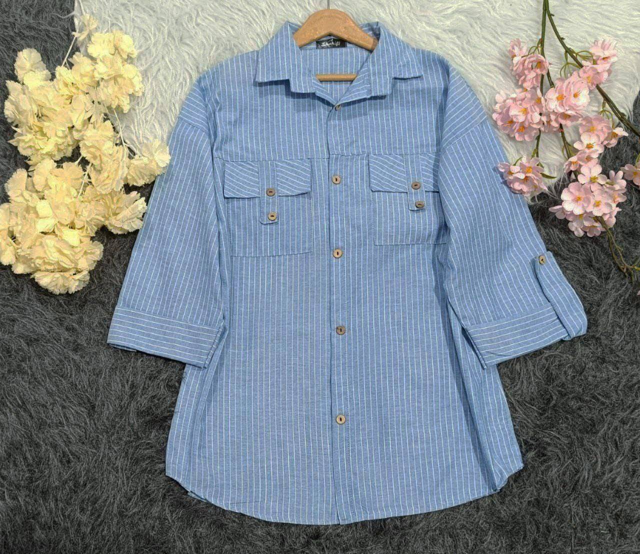 ✨ شیکپوشی به سبک خاص خودت ✨ شومیز راهراه با طراحی راحت و خنک، انتخابی ایدهآل برای روزهای پاییزی🌸 ✅ پارچه سبک و خنک ✅ استایل اسپرت و روزمره ✅ قابل ست با شلوار جین و شلوارک مناسب برای استفاده روزانه و مهمونیهای دوستانه 💙 با این بلوز جذاب، راحتی و زیبایی رو همزمان تجربه کن!