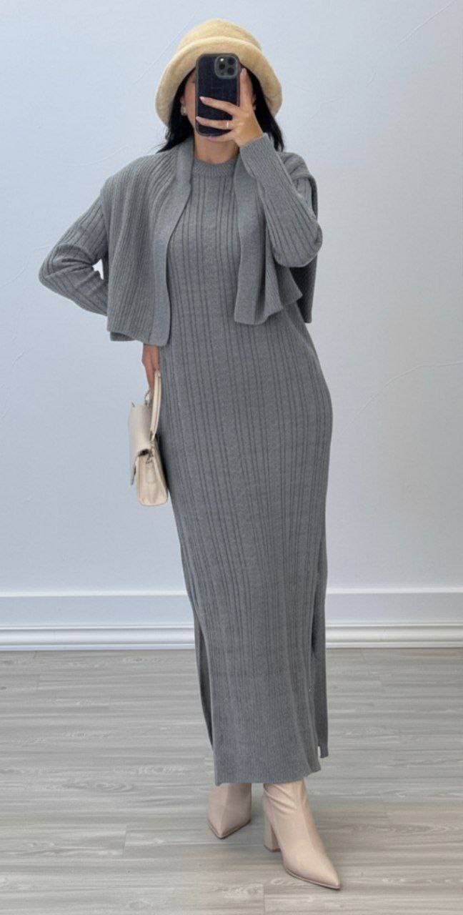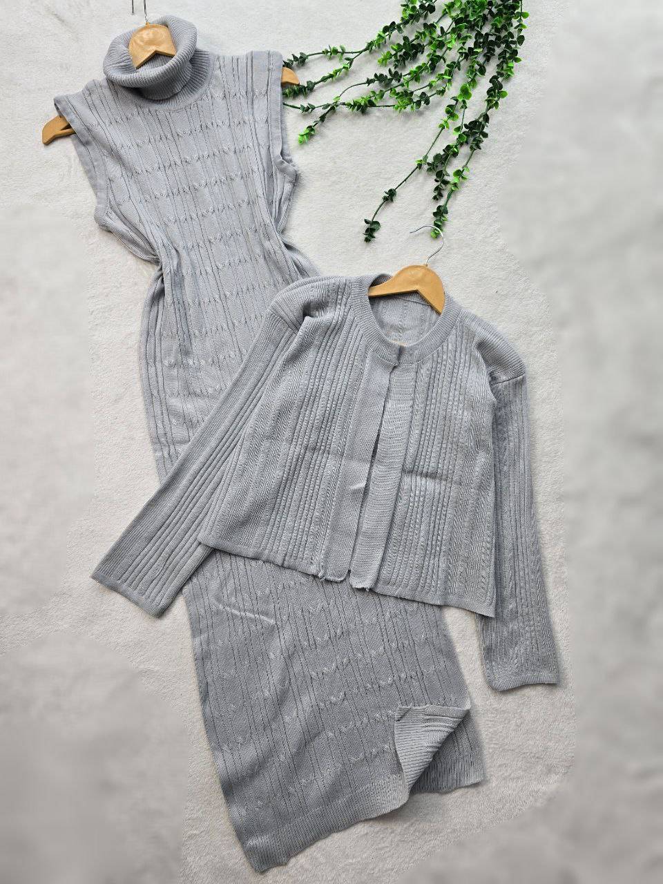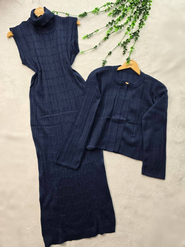 ست دو تکه بافت سارافون یقه اسکی و کت رویه