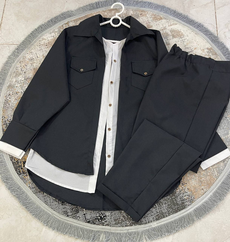 پشت حدود 84 -🌟 دورسینه حدود 120 قد استین از یقه 72 قد شلوار حدود 92 - پشت کمرشلوار کش میباشد - شومیز به مانتو متصل میباشد💥