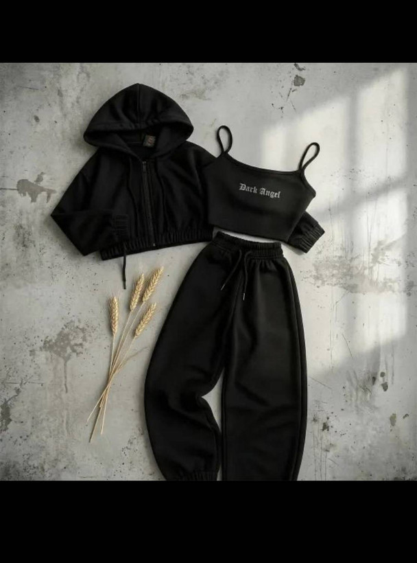 ❤️سه تیکه شامل 💕هودی+شلوار+کراپ💕 📋 توضیحات: ❤️قدهودی56 ❤️قدکراپ26 ❤️قد شلوار92 ❤️دورسینه هودی110 ❤️فری38تا46