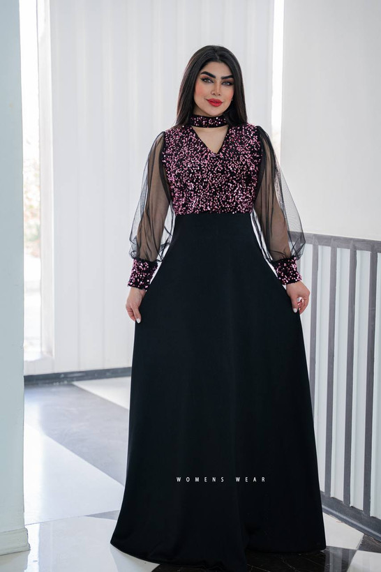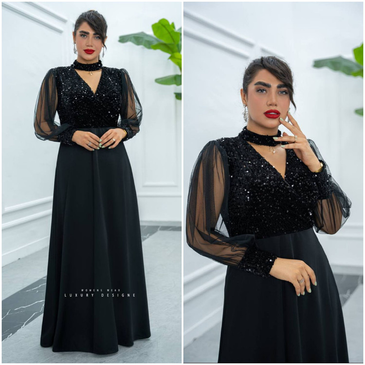 پیراهن مجلسی گلشن✅😍پشتکار زیپدار💣جنس کرپ دو رو و پولک مخملی😍مزونی