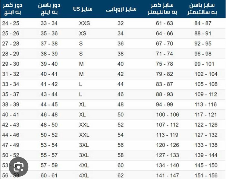 سایز ها : (1)38_40, (2)42_44, (3)46_48, (4)50_52