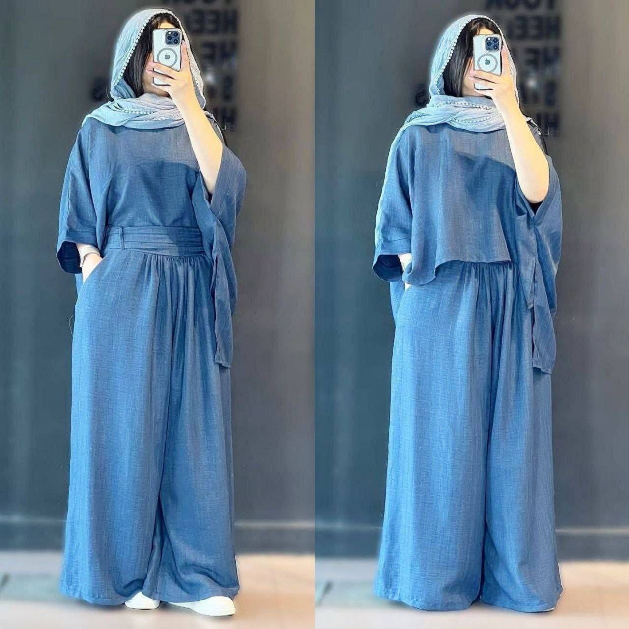 ست مانتو کتی و شلوار ماریا کد 2663🩵🩵